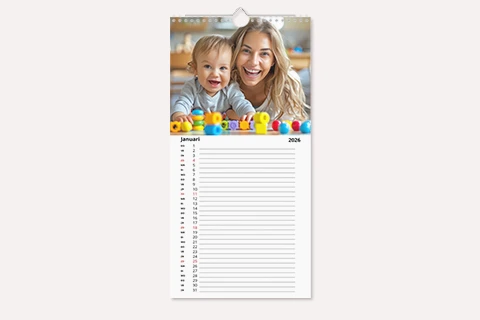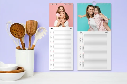 Onze keukenkalenders zijn beschikbaar in twee formaten. Of u nu de brede of smalle versie prefereert, onze afdrukexperts leveren uitstekende resultaten met uw dierbare fotoherinneringen. U zult levendige kleuren en haarscherpe details ervaren: het lijkt wel alsof u de foto’s voor het eerst ziet!